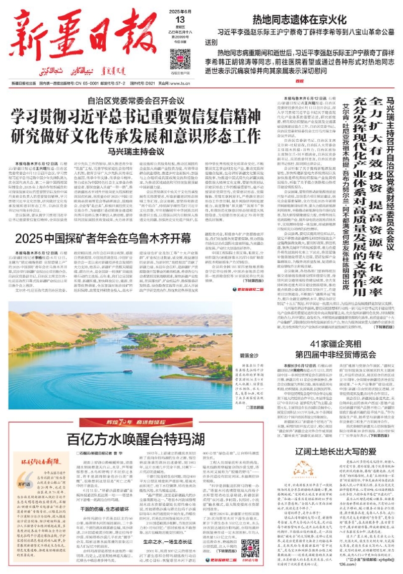 今年正值習近平總書記提出“綠水青山就是金山銀山”理念20周年,也是自治區(qū)成立70周年。為全面呈現新疆深入踐行習近平生態(tài)文明思想的生動實踐,石榴云/新疆日報即日起推出“環(huán)著沙漠看新疆”專題專欄,以塔克拉瑪干沙漠防沙治沙為經緯,深入報道治沙前沿現場、防沙硬核科技、治沙人不懈堅守和綠洲崛起成果,多角度講述各族干部群眾全力打好塔克拉瑪干沙漠邊緣阻擊戰(zhàn),守護家園創(chuàng)造綠色奇跡的動人故事,全景展現新疆堅定不移走生態(tài)優(yōu)先、綠色發(fā)展道路,推進美麗新疆建設的顯著成效。