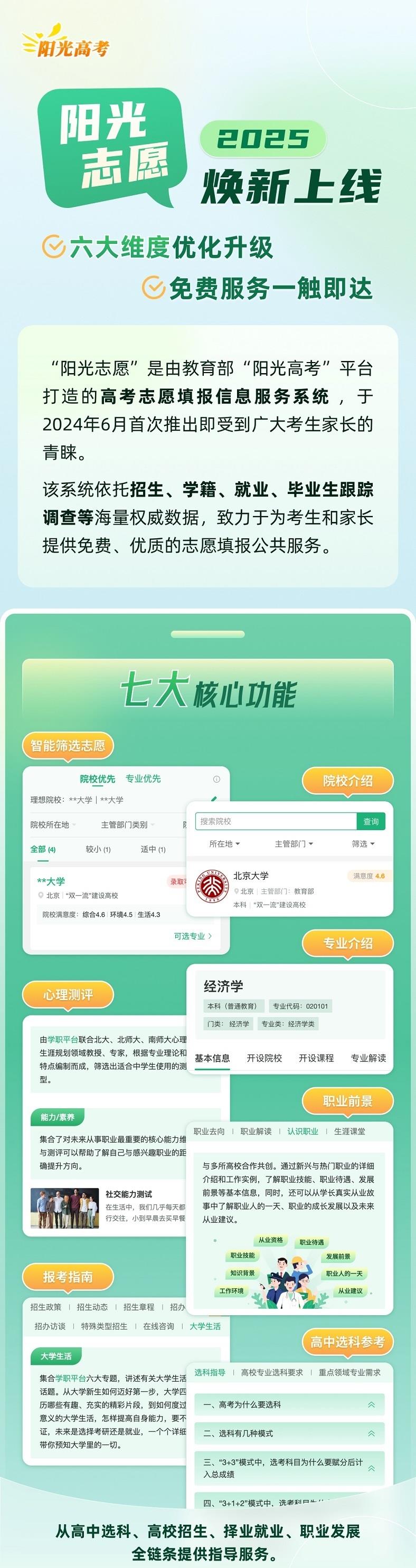 2025年,“陽光志愿”實(shí)現(xiàn)6大維度優(yōu)化升級,更好服務(wù)考生家長科學(xué)決策。