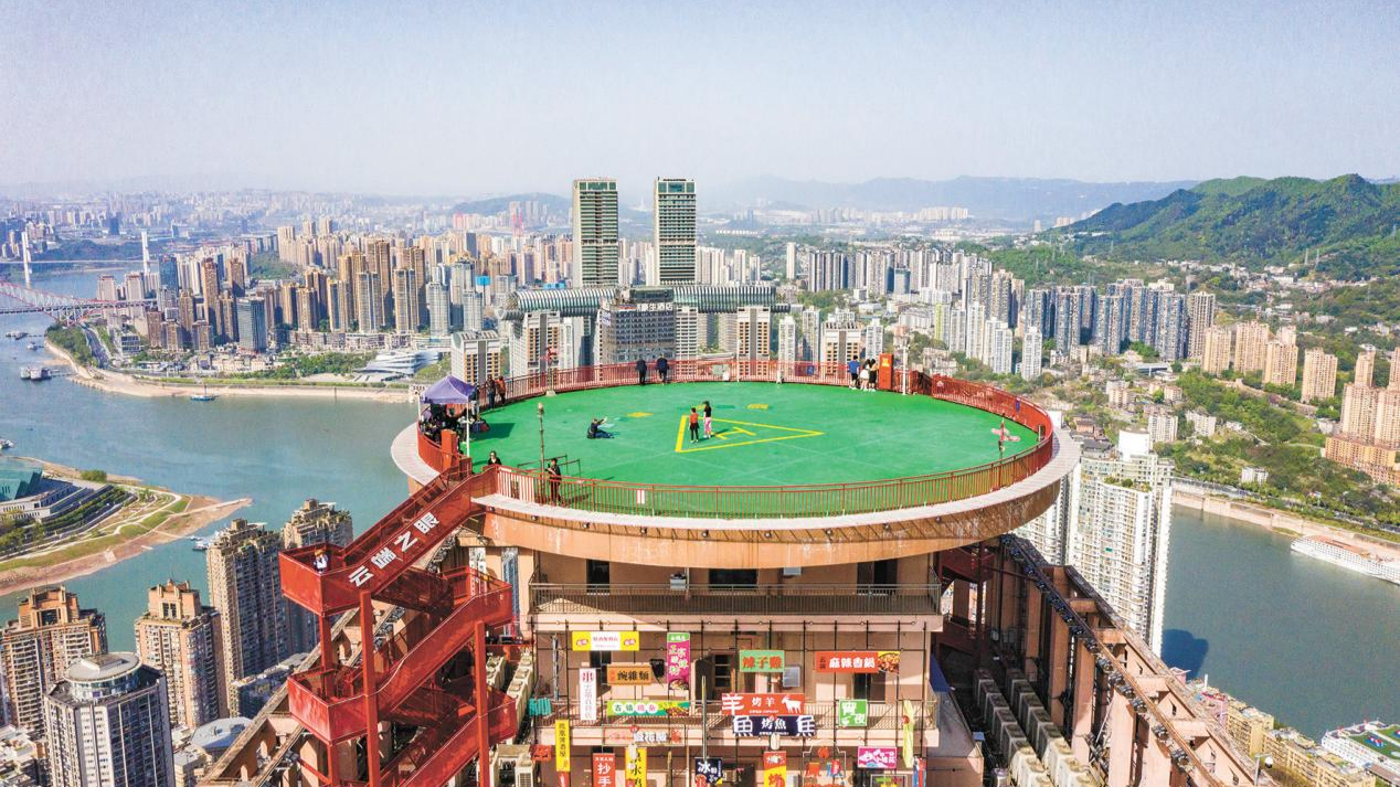 渝中區(qū)文化旅游委相關(guān)負責(zé)人稱,目前已在解放碑、朝天門等地打造了一批高空觀景臺和特色消費場景,并因地制宜地打造了無邊際泳池、旋轉(zhuǎn)餐廳、高空秋千、空中酒吧等一系列特色休閑場所,讓“天空之城”逐漸成為一種新型的消費形式和旅游體驗。