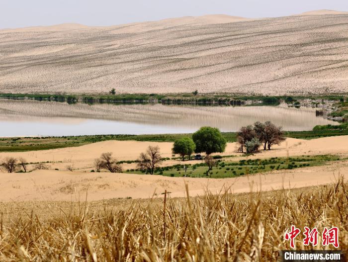 圖為如今九棵樹(shù)項(xiàng)目區(qū)沙漠中的綠洲。徐曉玲 攝