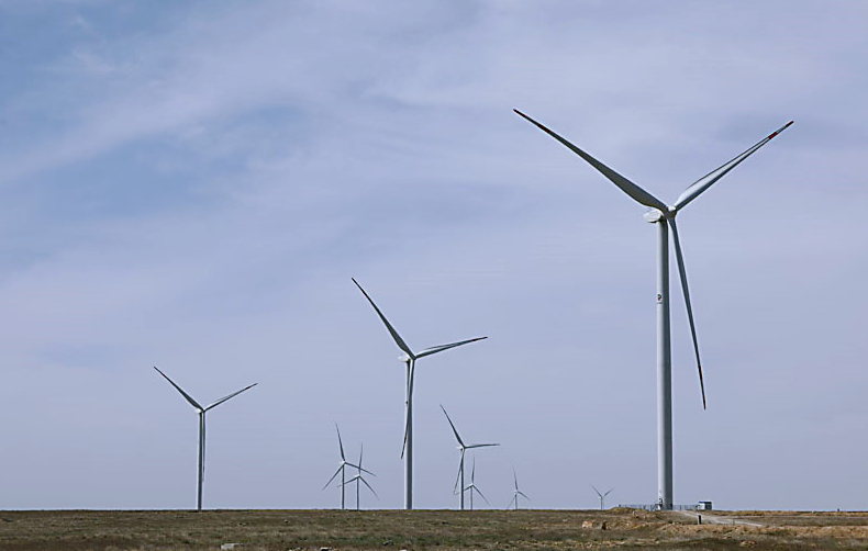 哈薩克斯坦札納塔斯拍攝的札納塔斯100兆瓦風電項目風機。圖片來源:新華社