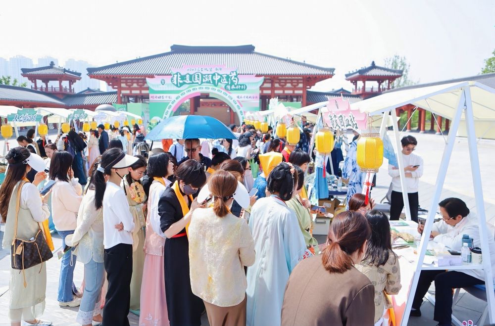 2025年4月10日,群眾在南陽市醫(yī)圣文化園體驗中醫(yī)義診。新華社記者 吳剛 攝