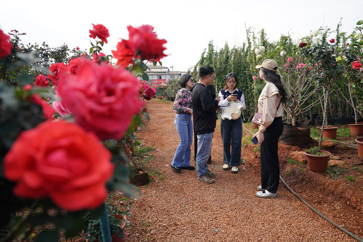 2025年4月11日,花商在云南昆明斗南一個花卉基地內(nèi)討論采購價格。新華社記者 陳欣波 攝