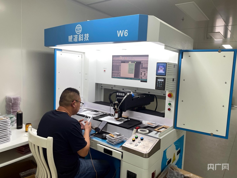企業(yè)車間內(nèi)的自動點膠機(央廣網(wǎng)記者 唐磊 攝)