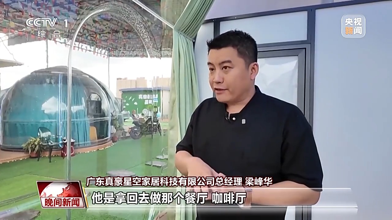 在制造業(yè)重鎮(zhèn)廣東佛山,記者走訪這家企業(yè)發(fā)現(xiàn),一幢幢晶瑩剔透的“星空房”看起來小巧玲瓏,走入其中,床、沙發(fā)、空調(diào)、浴缸卻應(yīng)有盡有。