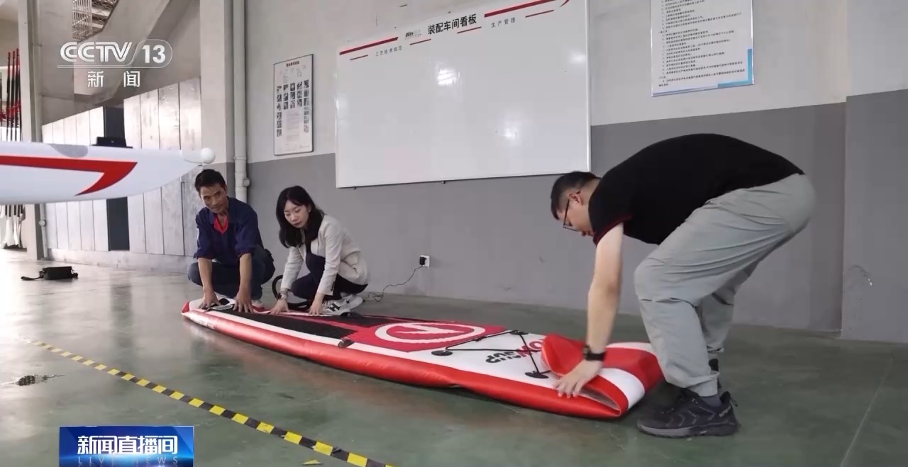 某水上用品制造企業(yè)負(fù)責(zé)人 金音:我們是用航空航天的一個工藝技術(shù)來制作賽艇,首創(chuàng)的一次成型的技術(shù),還有一些結(jié)構(gòu)上面的一些突破,排水系統(tǒng)的發(fā)明專利。