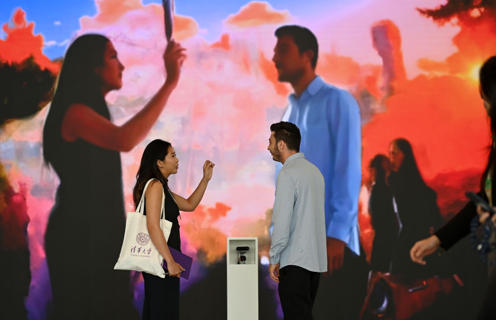 6月24日,在國(guó)家會(huì)展中心(天津),參會(huì)嘉賓在前瞻空間“如何讓科技觸手可及”分論壇現(xiàn)場(chǎng)交流。新華社記者趙子碩攝