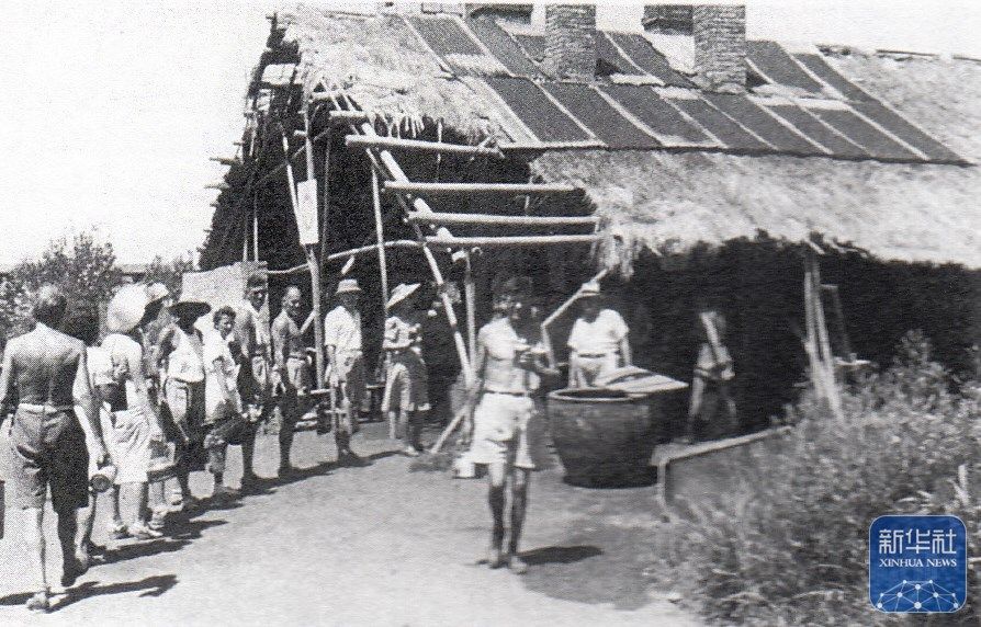 上海龍華集中營里,人們?cè)谂抨?duì)取水(資料照片)。新華社發(fā)(上海中學(xué)供圖)