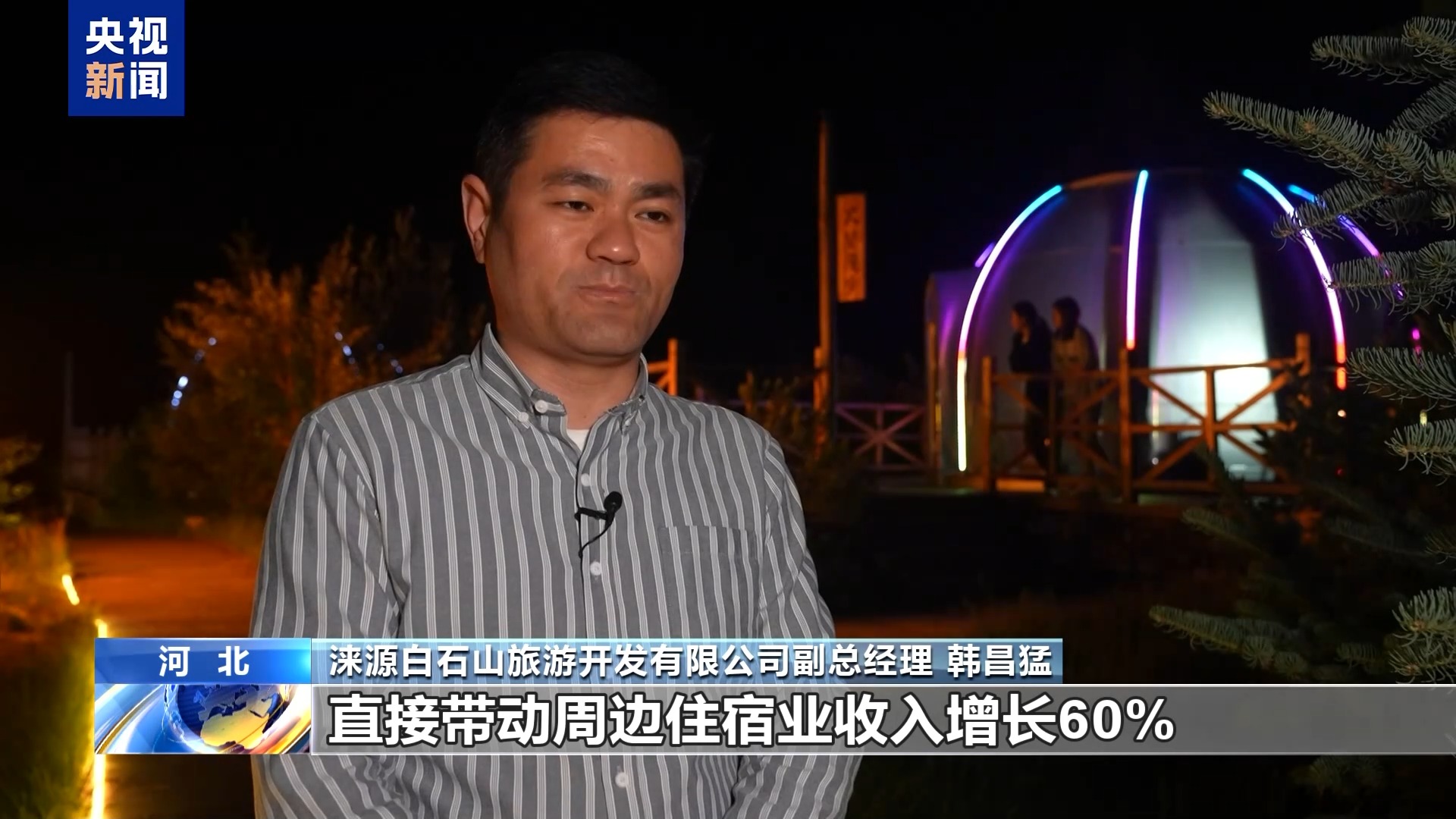 淶源白石山旅游開發(fā)有限公司副總經(jīng)理 韓昌猛:過(guò)夜游客占比從過(guò)去的10%增長(zhǎng)至35%,直接帶動(dòng)周邊住宿業(yè)收入增長(zhǎng)60%。