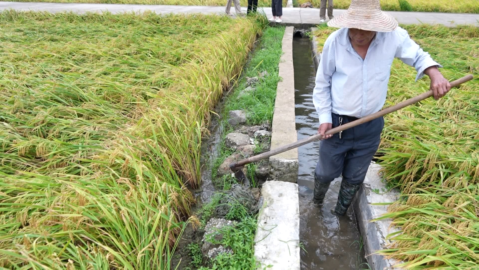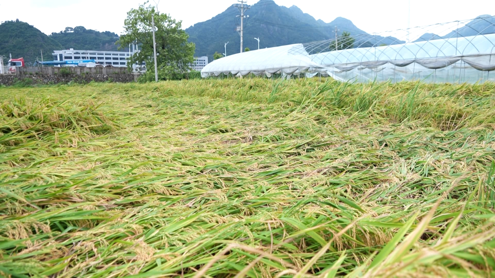 農技專家楊煥清來到現場指導農戶搶收,“它倒平后很容易會發(fā)芽,稻谷發(fā)芽以后就沒有價值了?,F在主要就是開溝排水,一有晴天馬上搶收。”