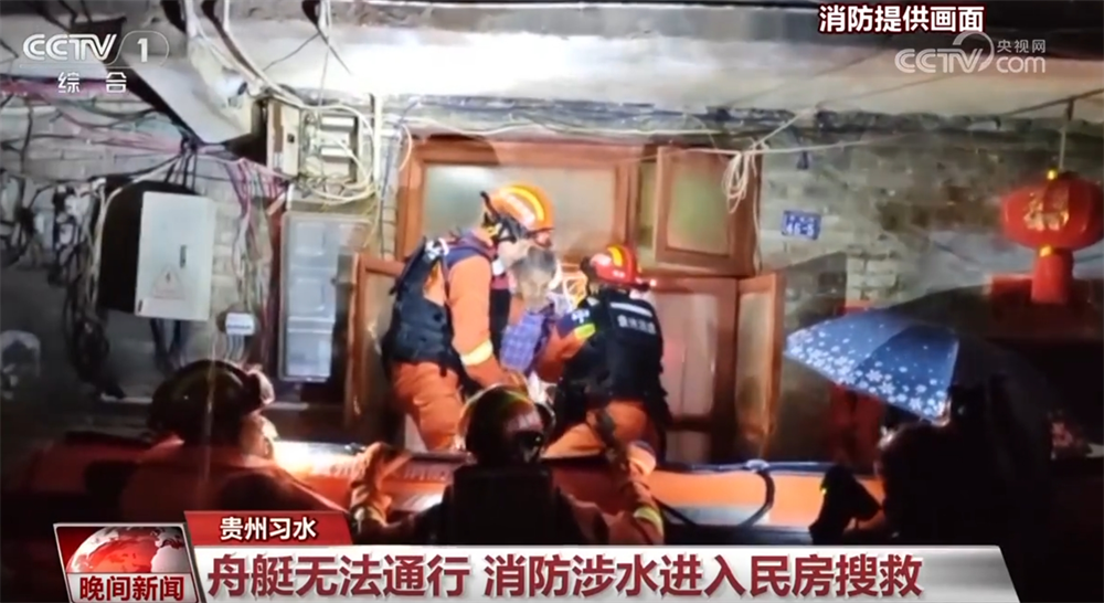 8日晚到9日清晨,貴州遵義習(xí)水縣遭遇強(qiáng)降雨襲擊,導(dǎo)致縣城多處低洼地帶積水嚴(yán)重,道路被淹、房屋進(jìn)水,多名群眾被困。當(dāng)?shù)叵啦块T展開救援,但因部分地區(qū)通道狹窄,舟艇無法通行,消防人員將繩索系在身上,涉水進(jìn)入民房展開搜救。