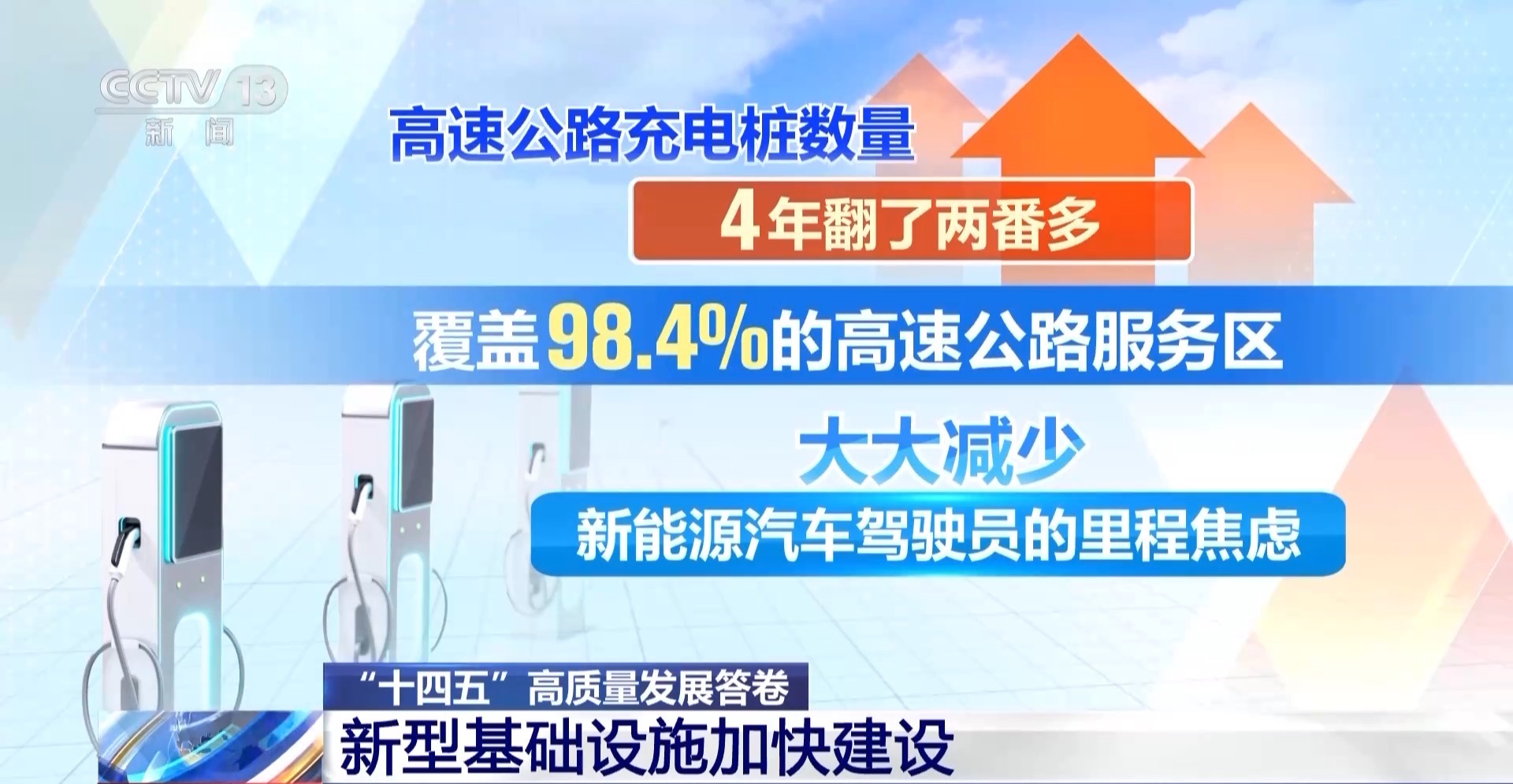 高速公路充電樁數(shù)量4年翻了兩番多,覆蓋了98.4%的高速公路服務(wù)區(qū),大大減少了新能源汽車駕駛員的里程焦慮。