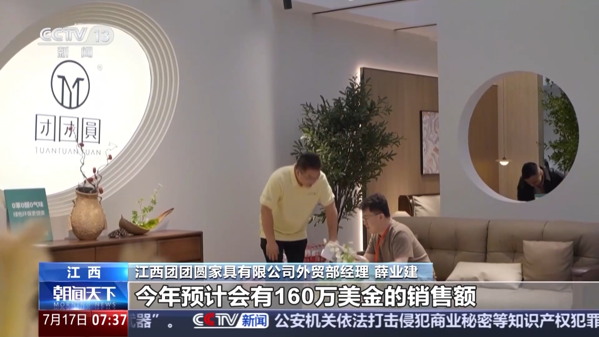 江西團(tuán)團(tuán)圓家具有限公司外貿(mào)部經(jīng)理 薛業(yè)建:家具在7月到11月是一個(gè)銷(xiāo)售旺季,今年預(yù)計(jì)會(huì)有160萬(wàn)美元的銷(xiāo)售額。