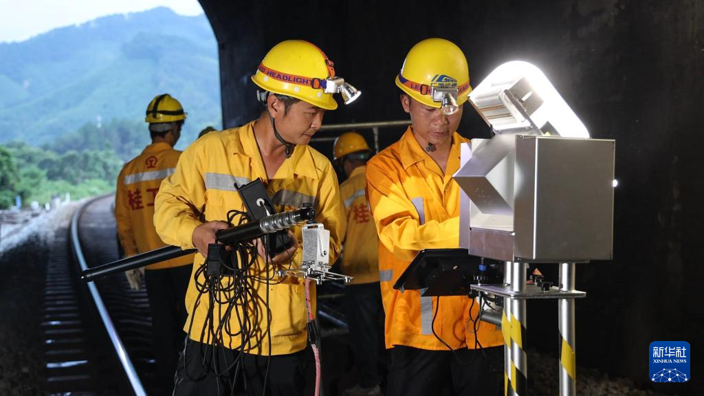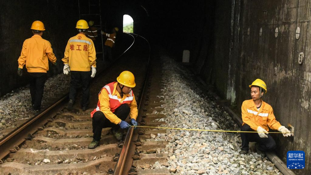 暑運期間,在湘桂鐵路(廣西段)沿線,國鐵南寧局桂林工務段13名橋隧工人日夜穿梭于桂北的崇山峻嶺間,對管段內的10座隧道、1075座涵洞進行多維度巡檢、排查隱患,確保湘桂鐵路線上暑運客貨列車的安全運行。
