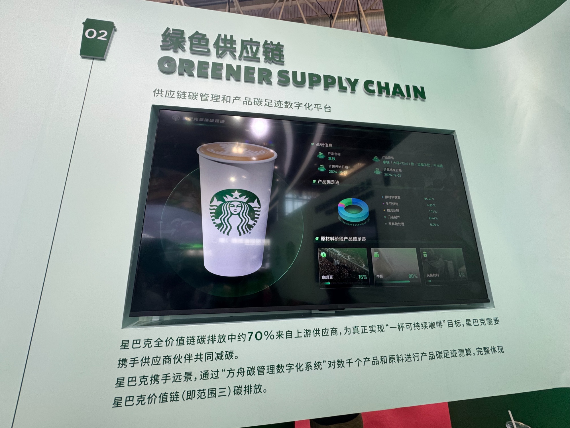 在第三屆鏈博會(huì)上,星巴克展示的綠色供應(yīng)鏈。(央廣財(cái)經(jīng)記者黃昂瑾 攝)