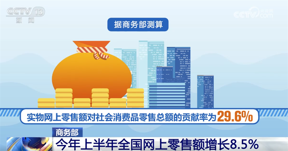 記者7月21日從商務部了解到,今年1—6月,全國網上零售額增長8.5%。