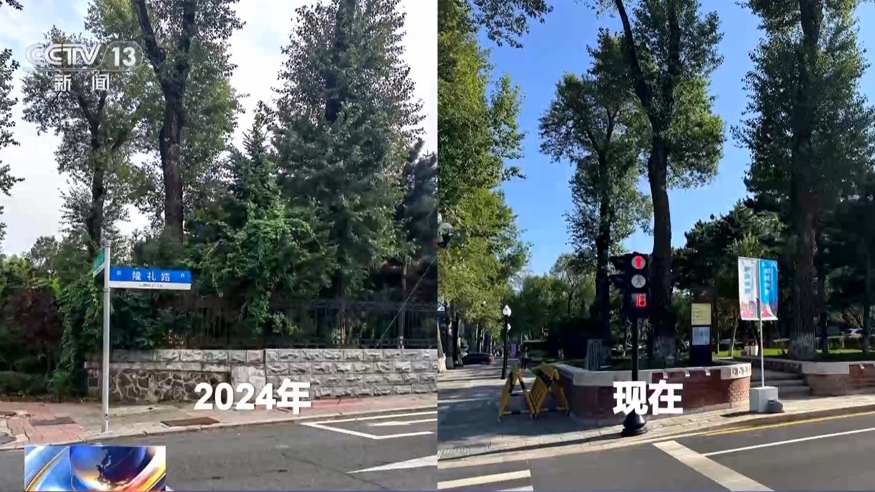 長(zhǎng)春市文化廣播電視和旅游局局長(zhǎng) 張輝勇:原來的圍墻直接立到了現(xiàn)在的人行道邊,人行道邊還有綠籬,實(shí)際上這條街能夠用于行走的空間是非常有限的。這一條街上13個(gè)院落也是13個(gè)產(chǎn)權(quán)單位,把這13個(gè)院落的圍墻給它打開。