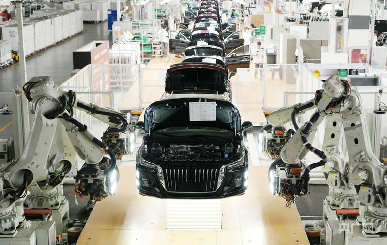 在中國一汽紅旗繁榮廠區(qū),14條自動(dòng)生產(chǎn)線每天能裝配下線500余輛汽車,這一速度讓這座工廠穩(wěn)居國內(nèi)汽車制造第一梯隊(duì)。