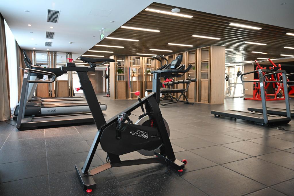8月3日,在成都世運(yùn)會運(yùn)動員村內(nèi)拍攝的運(yùn)動員健身房。新華社記者 胥冰潔 攝