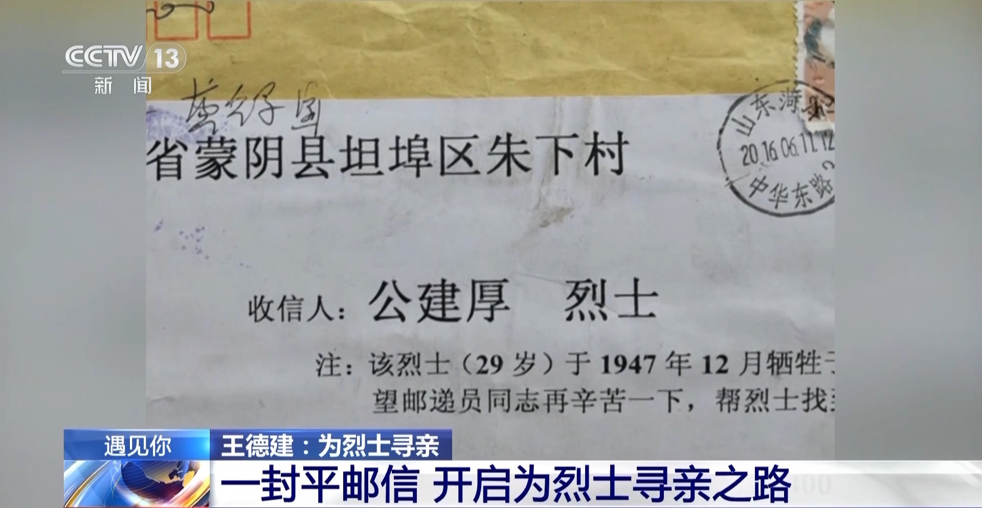 山東省臨沂市蒙陰縣坦埠郵政支局投遞員 王德建:去村里送郵件的時候就打聽。但是,他們都說沒聽說過有這位烈士。