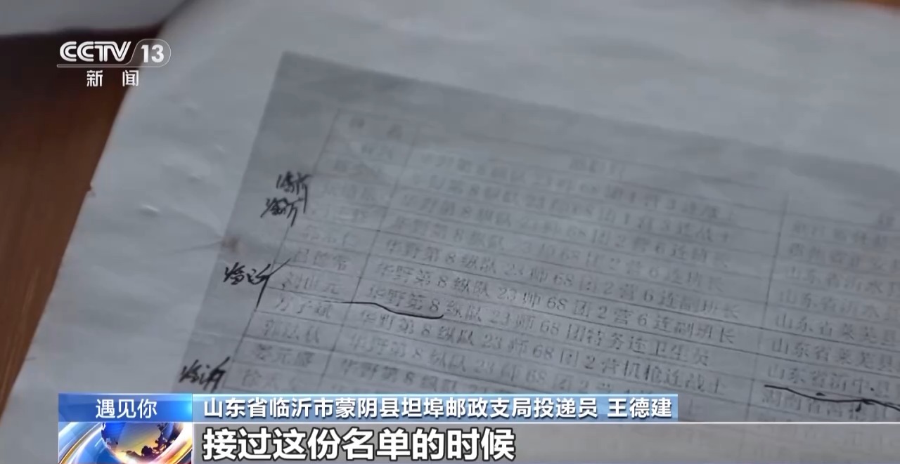 求助郵遞員王德建為龔建厚烈士尋親成功,讓張景憲看到了通過書信為烈士尋親的希望。于是,他把一份寫有93名烈士信息的名單交給了王德建,讓他幫忙尋找名單上的臨沂籍烈士親屬。