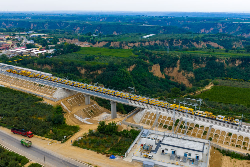 西延高鐵正在有序推進電氣化設(shè)備的精調(diào)。(中國鐵路西安局集團有限公司供圖)