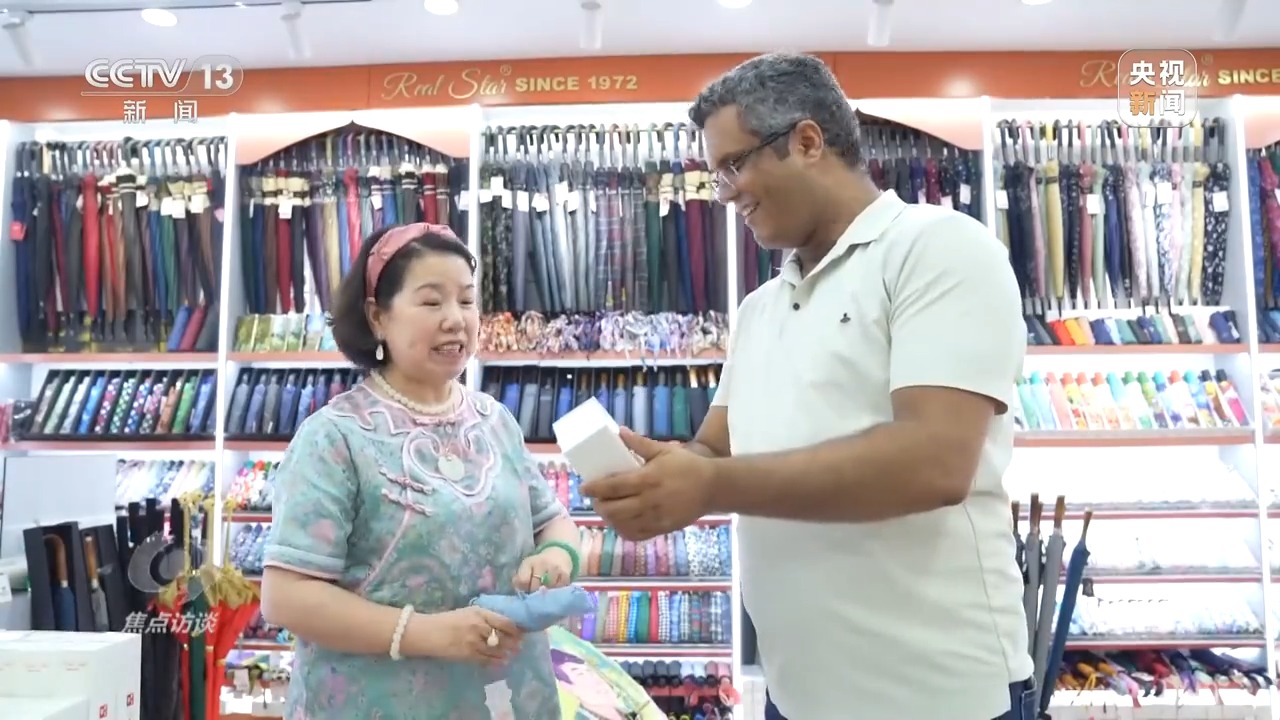 張吉英是義烏小商品市場(chǎng)的一位傘具經(jīng)營(yíng)戶。今年,她店鋪里一款經(jīng)過創(chuàng)新設(shè)計(jì)的防曬傘,在國(guó)外掀起了一股流行風(fēng)潮,與國(guó)內(nèi)消費(fèi)者追求防曬傘小巧輕便不同,國(guó)外客戶更偏愛大尺寸款式。比如在中東地區(qū),人們喜歡雨傘里面能噴水霧的款式,以追求更好的降溫體驗(yàn)。