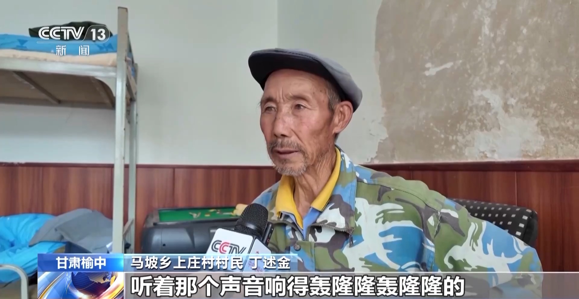 馬坡鄉(xiāng)上莊村村民 丁述金:我們是老兩口。我想轉(zhuǎn)移卻不敢走,聽(tīng)著那個(gè)聲音響得轟隆隆轟隆隆的,聲音大得很,不敢出去了。他們就把我們喊著叫上,一把拉上就出來(lái)了。