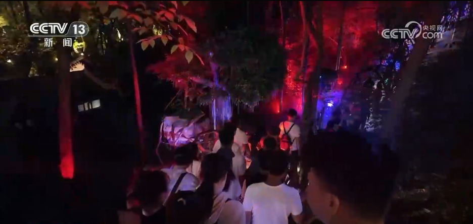 在八公山國家地質(zhì)公園,不少游客選擇到森林里避暑游玩,特別是到了晚上,景區(qū)通過光影秀打造了夜間森林的游覽路線,還發(fā)放了15000余張兒童免費體驗券,吸引游客到來。