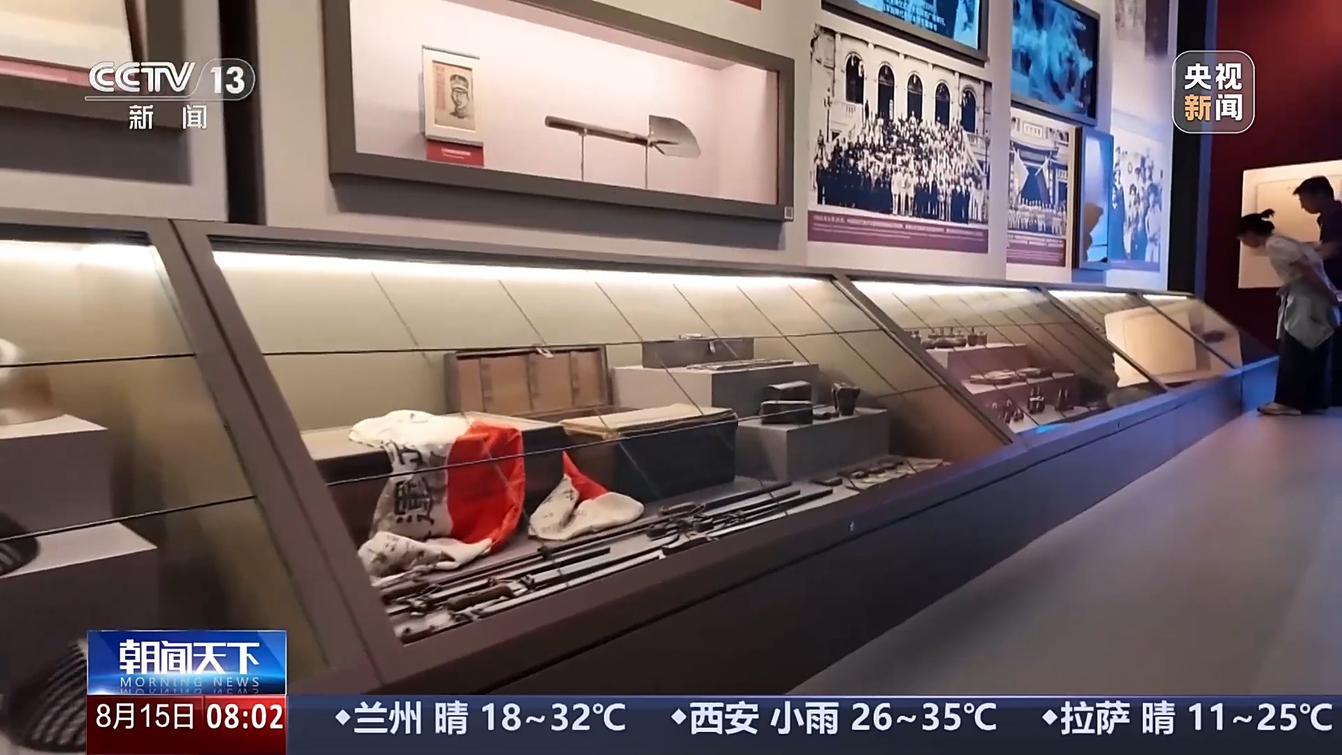 在中國人民抗日戰(zhàn)爭紀念館地下一層第七部分展廳,陳列了眾多與1945年8月15日日本宣布無條件投降相關的展品。館內(nèi)還首次展出了國家一級文物——“密蘇里”號戰(zhàn)列艦3號鍋爐銘牌。1945年9月2日,日本無條件投降簽字儀式在“密蘇里”號主甲板舉行。參觀者們通過文物下方的多媒體大屏,觀看當時的歷史視頻。此外,展廳還原了1945年9月9日上午9時,中國戰(zhàn)區(qū)日軍投降簽字儀式舉行時的歷史場景。