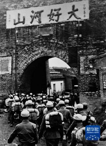 1945年,收復(fù)山海關(guān)的八路軍列隊(duì)通過(guò)城樓。張進(jìn)學(xué) 攝