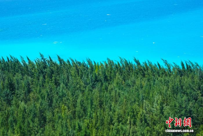 這是2025年6月29日在南海某島礁拍攝到的畫面,礁上茂密的綠色植被取代了原本白茫茫的礁砂,與周邊蔚藍(lán)色海面形成鮮明對(duì)比?!埓笥?攝
