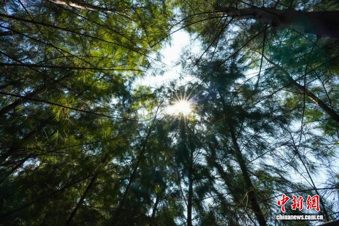 在某島礁,官兵培育的植物種類已達(dá)120余種,植被覆蓋率超過90%,成片的木麻黃林、抗風(fēng)桐林、大葉欖仁樹林鱗次櫛比地分布在各個(gè)角落,林下土壤表層出現(xiàn)了落葉和枯草形成的腐殖質(zhì),喬、灌、草銜接互補(bǔ)的森林植物群落生長格局正在加速形成。