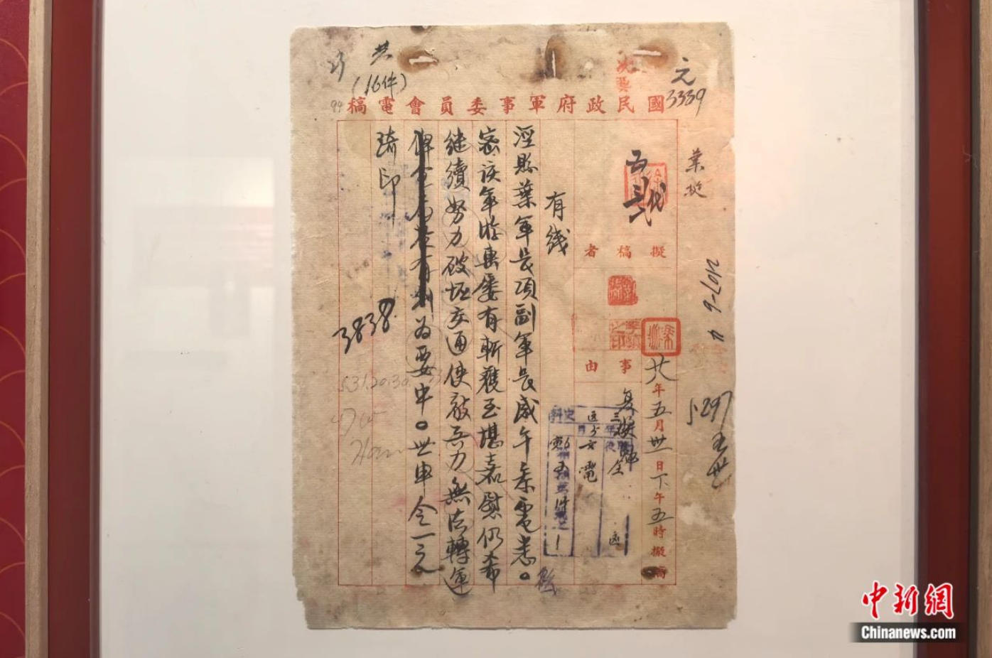 蔣介石第一次給葉挺軍長、項英副軍長的嘉獎令。張強 攝