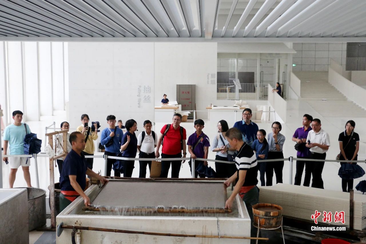 游客在非遺體驗館可親手體驗撈紙、曬紙等工序;夜晚則可欣賞沉浸式新媒體互動表演《只緣身在紙山中》……如今,涇縣全域正加快推動宣紙產(chǎn)業(yè)與紅色文旅、節(jié)慶等跨界融合,激活古老非遺新活力;發(fā)布“紙墨古鎮(zhèn)·紅色記憶研學(xué)”旅游線路,將當(dāng)?shù)刂匾锩f址、宣紙文化園等文旅地標(biāo)串珠成鏈,使非遺探索與紅色文化巡禮緊密結(jié)合。