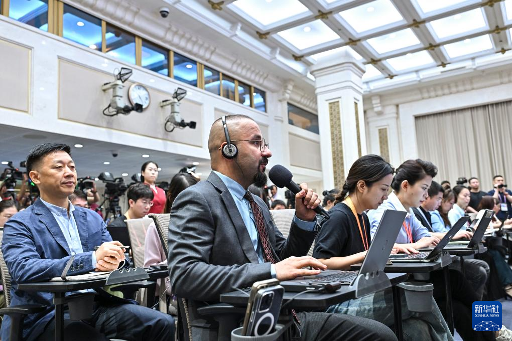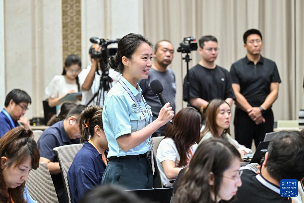 8月20日,國務(wù)院新聞辦公室在北京舉行新聞發(fā)布會,閱兵領(lǐng)導(dǎo)小組辦公室副主任、中央軍委聯(lián)合參謀部作戰(zhàn)局少將副局長吳澤棵,中國人民解放軍中部戰(zhàn)區(qū)閱兵指揮機(jī)構(gòu)辦公室常務(wù)副主任、政治工作部少將副主任徐貴忠介紹閱兵準(zhǔn)備工作有關(guān)情況,并答記者問。這是記者在現(xiàn)場提問。新華社記者 李鑫 攝