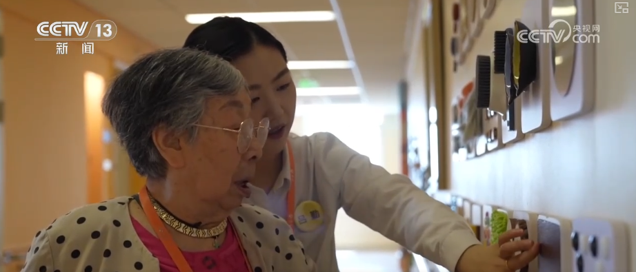 呂勤介紹,這面墻是多感官刺激撫觸類訓(xùn)練墻。通過(guò)一定頻次,規(guī)律去做一些感統(tǒng)訓(xùn)練的模式,減緩老人感官退化的速度。