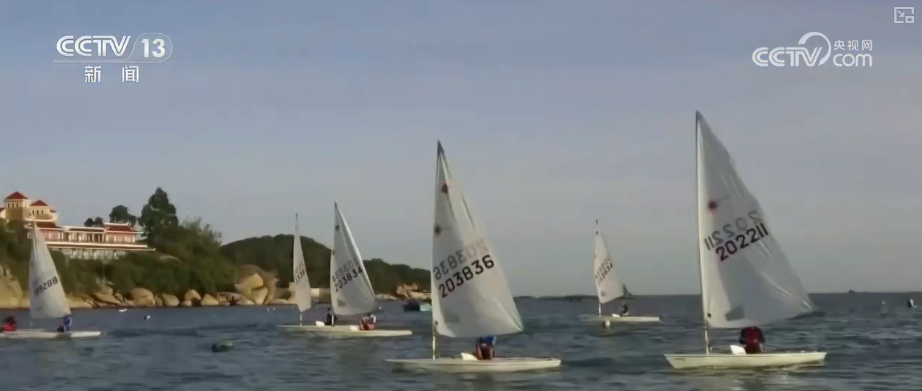 這里是福建東山的南門灣,海風(fēng)帶著咸濕的氣息撲面而來。沿著航線,一路途徑文公祠、風(fēng)動(dòng)石等標(biāo)志性景點(diǎn)。作為東山海洋經(jīng)濟(jì)的重要引擎,帆船運(yùn)動(dòng)正在為這邊海域注入不一樣的活力。