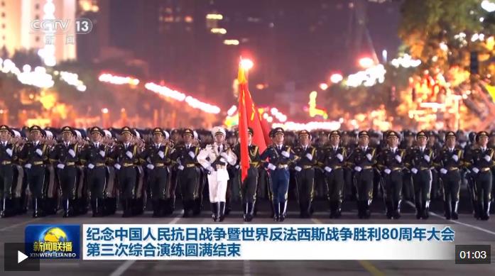 記者從中國人民抗日戰(zhàn)爭暨世界反法西斯戰(zhàn)爭勝利80周年紀(jì)念活動新聞中心獲悉,8月23日17時至8月24日5時,北京天安門地區(qū)舉行了紀(jì)念中國人民抗日戰(zhàn)爭暨世界反法西斯戰(zhàn)爭勝利80周年大會第三次綜合演練。據(jù)介紹,這是一次全流程、全要素預(yù)演,也是紀(jì)念大會最后一次綜合演練,包括紀(jì)念大會儀式(含閱兵)、轉(zhuǎn)場、觀眾組織及應(yīng)急處置等各項內(nèi)容,重點檢驗了各流程、各環(huán)節(jié)的銜接配合,為正式活動的成功舉辦打下堅實基礎(chǔ)。