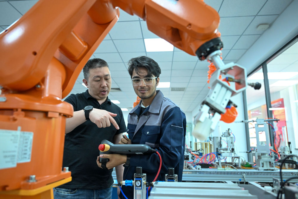 2018年7月,由天津與巴基斯坦合作共建的巴基斯坦魯班工坊正式揭牌,迄今已累計(jì)培訓(xùn)1000余人次。2024年9月,搭乘魯班工坊的機(jī)遇快車(chē),成績(jī)優(yōu)異的穆杉獲得獎(jiǎng)學(xué)金,到天津求學(xué)。