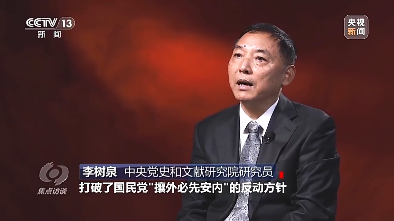中央黨史和文獻(xiàn)研究院研究員 李樹泉:首先在政治上打破了國(guó)民黨“攘外必先安內(nèi)”的反動(dòng)方針,形成了“地?zé)o分南北,人無分老幼”全國(guó)抗戰(zhàn)的局面,在軍事上就形成了敵后戰(zhàn)場(chǎng)和正面戰(zhàn)場(chǎng)的戰(zhàn)略配合,這樣就陷日本侵略者于人民戰(zhàn)爭(zhēng)的汪洋大海。