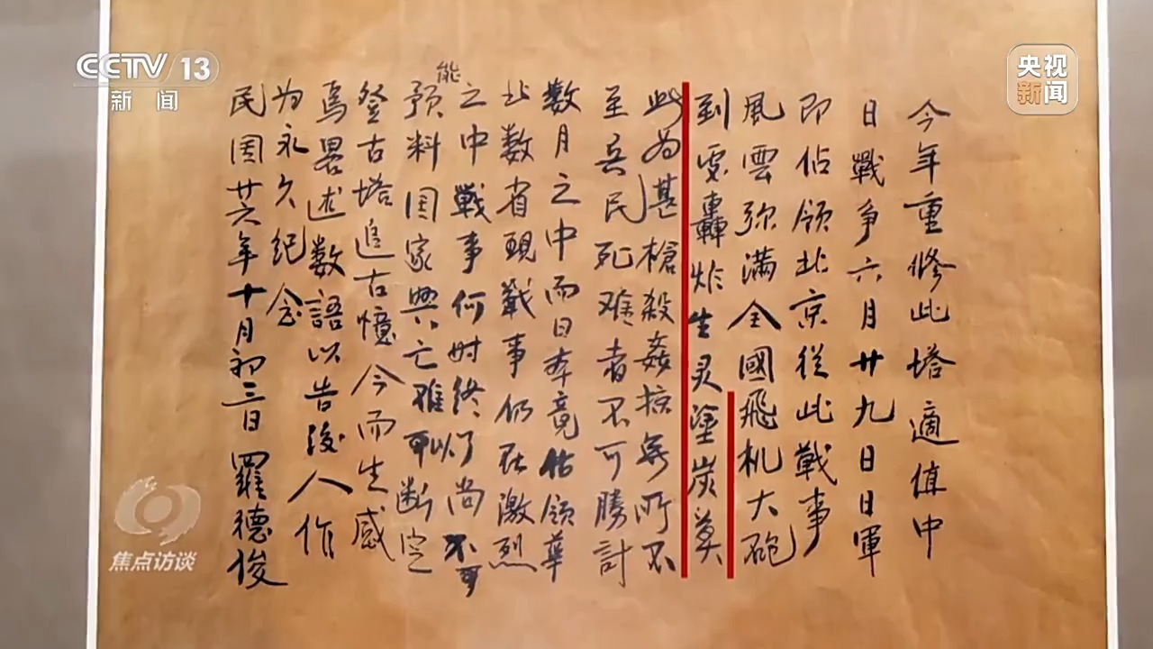 今年是中國(guó)人民抗日戰(zhàn)爭(zhēng)暨世界反法西斯戰(zhàn)爭(zhēng)勝利80周年。在這場(chǎng)決定人類命運(yùn)的偉大斗爭(zhēng)中,中國(guó)作為東方主戰(zhàn)場(chǎng),以3500萬同胞傷亡的沉重代價(jià),為世界反法西斯事業(yè)作出了不可磨滅的歷史貢獻(xiàn)。為銘記這段用鮮血和生命鑄就的壯麗史詩(shī),《焦點(diǎn)訪談》推出特別節(jié)目“歷史照耀今天”。今天,我們首先重返1931年九一八事變的歷史現(xiàn)場(chǎng),揭開中國(guó)人民14年不屈抗戰(zhàn)的序幕。