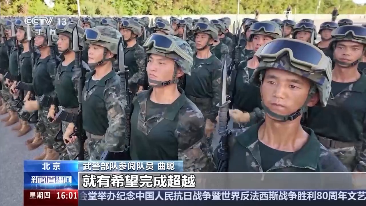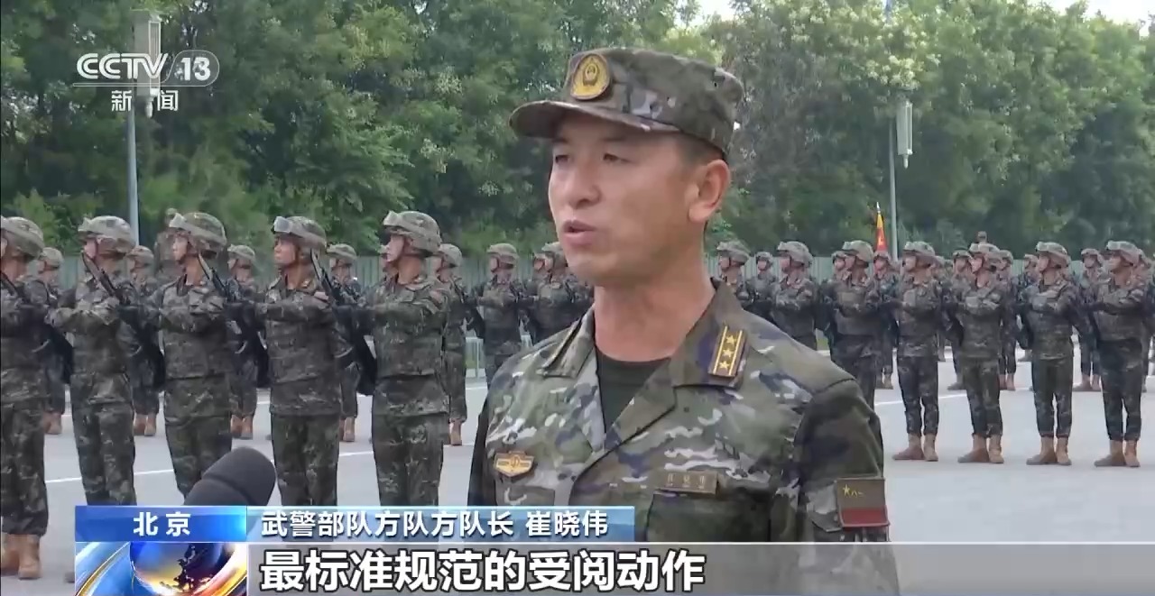 武警部隊(duì)方隊(duì)方隊(duì)長(zhǎng) 崔曉偉:目前我們已經(jīng)進(jìn)入最后的沖刺階段,在紀(jì)念抗戰(zhàn)勝利80周年紀(jì)念日當(dāng)天,以最昂揚(yáng)的精神狀態(tài)、最標(biāo)準(zhǔn)規(guī)范的受閱動(dòng)作,光榮地接受黨和人民檢閱,接受習(xí)主席檢閱。
