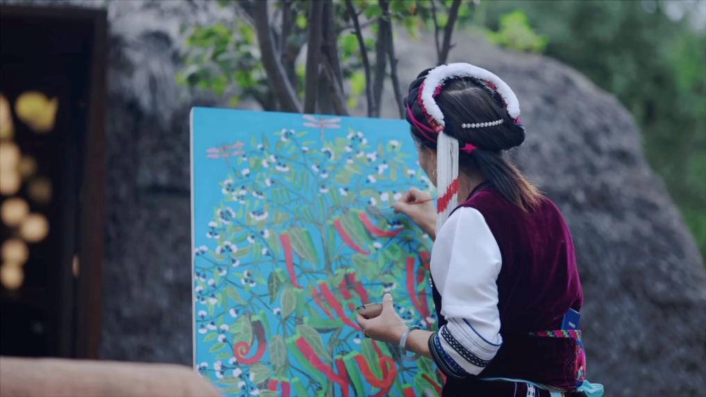 云南大理雙廊鎮(zhèn)伙山村有個農(nóng)民畫社,92歲的王秉秀老人從78歲起拿起畫筆,把繡花的技法用到繪畫上,將田間的耕耘、山間的景致、世代相傳的民俗風情融入畫作。