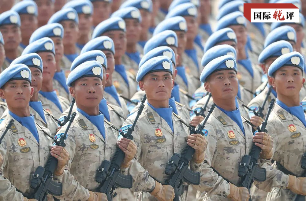 在這次受閱的45個方(梯)隊中,有一支頭戴藍色貝雷帽的維和部隊方隊。參加聯(lián)合國維和行動35年來,“中國藍盔”不懼艱險,用行動譜寫大國擔(dān)當(dāng)。從前往亞丁灣、索馬里海域執(zhí)行護航任務(wù),到“和平方舟”號醫(yī)院船進行援外醫(yī)療,中國人民解放軍為維護世界和平作出重要貢獻。