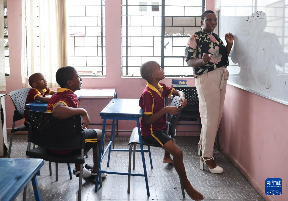 9月4日,在牙買加首都金斯敦艾特特殊教育小學(xué),校長(zhǎng)娜塔莎·拉塞爾在授課。新華社記者 李夢(mèng)馨 攝