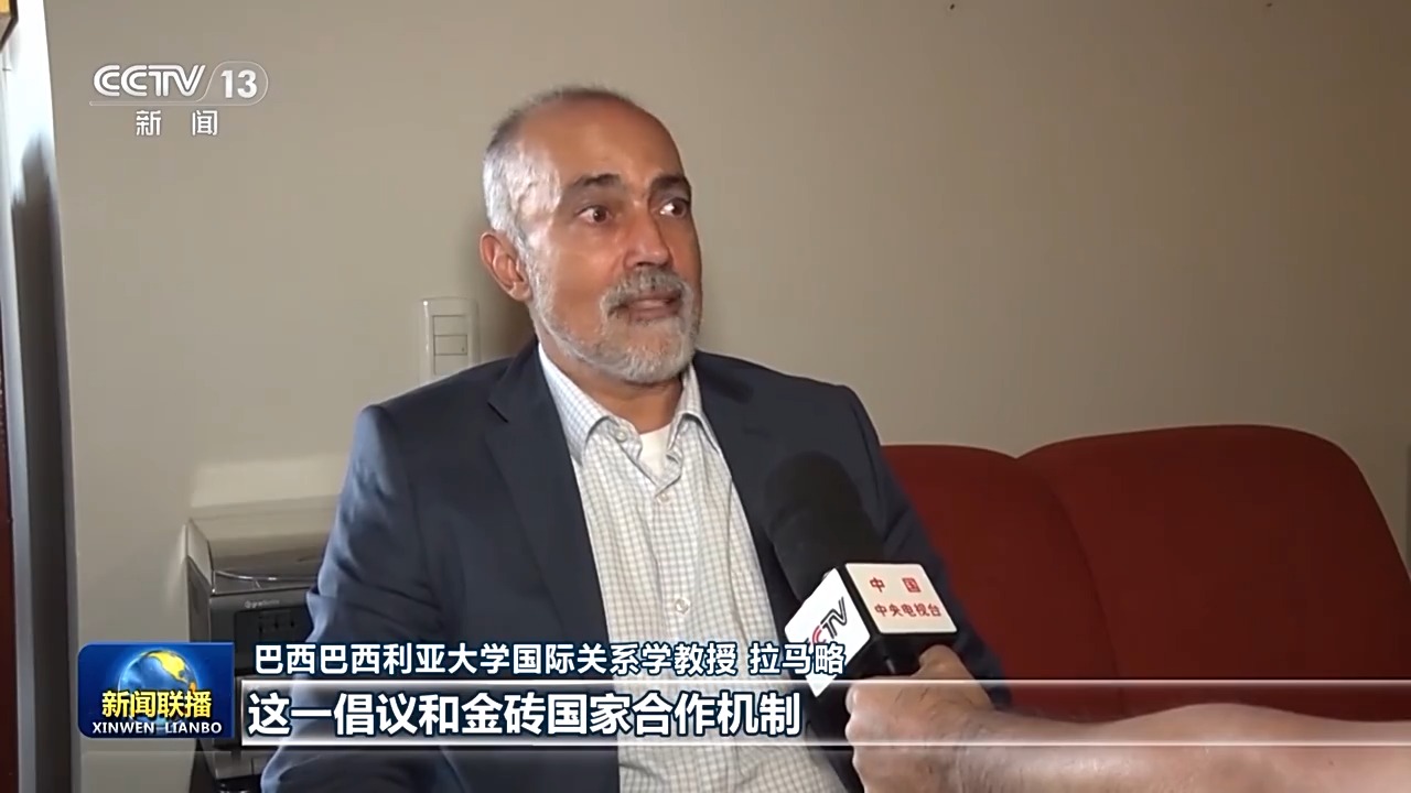 巴西巴西利亞大學(xué)國際關(guān)系學(xué)教授 拉馬略:習(xí)近平主席提出的共建“一帶一路”倡議非常積極,這一倡議和金磚國家合作機(jī)制為各國提供了新的合作途經(jīng),使他們能夠更協(xié)調(diào)地應(yīng)對壓力,金磚國家合作機(jī)制不僅對全球南方國家有益,對全球同樣重要,有助于實現(xiàn)共贏,這就是它的重要性所在。