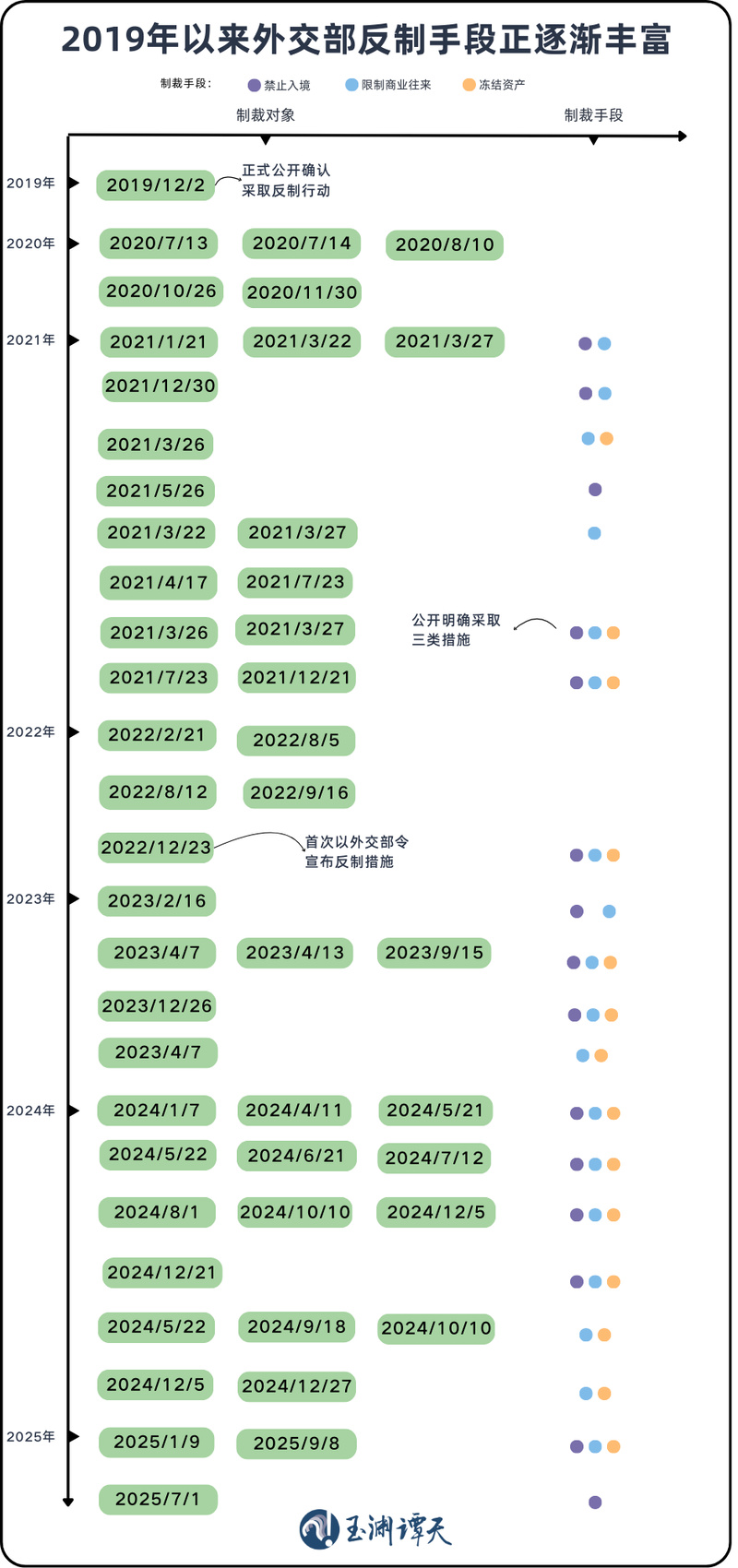 早些年,我國的反制多針對歐美國家,如美國、英國、加拿大。但今年以來,范圍已經(jīng)首次延伸至菲律賓、日本等。