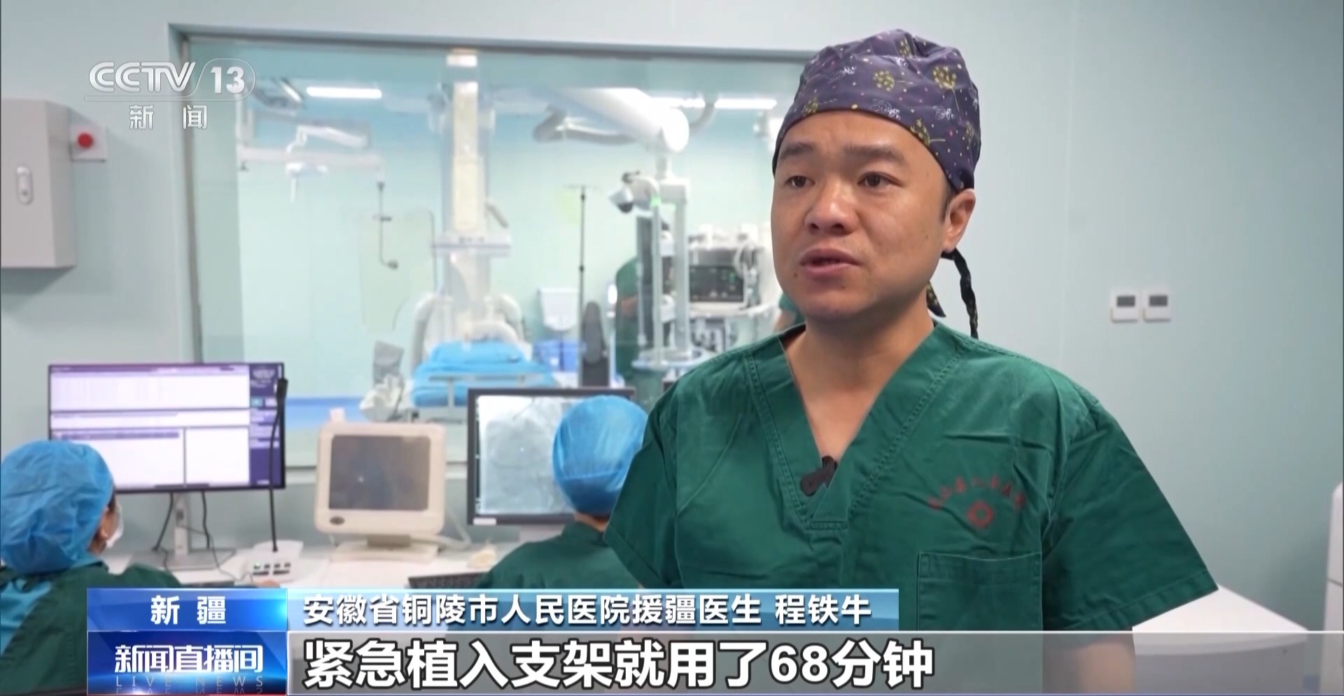 安徽省銅陵市人民醫(yī)院援疆醫(yī)生 程鐵牛:緊急植入支架就用了68分鐘。心內(nèi)科急診有個(gè)“黃金90分鐘”,現(xiàn)在我們終于把這條生死線前移了一千里!