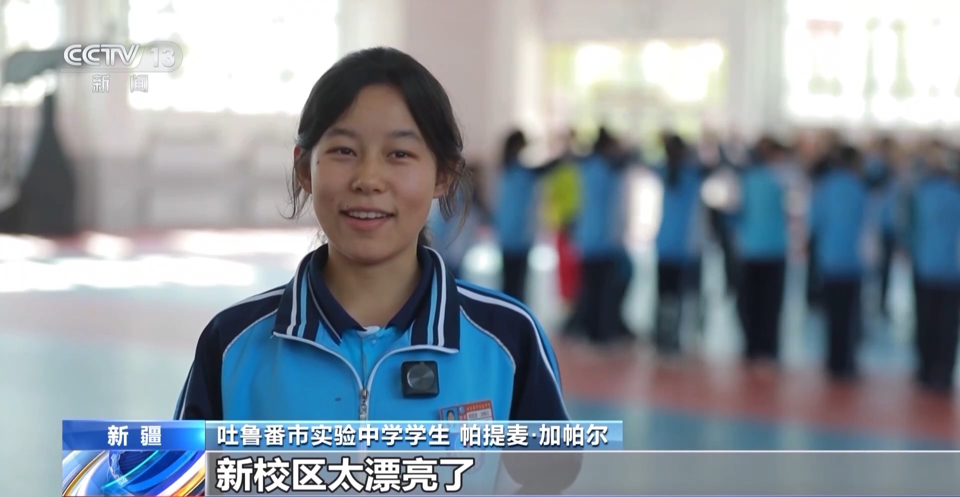吐魯番市實(shí)驗(yàn)中學(xué)學(xué)生 帕提麥·加帕爾:新校區(qū)太漂亮了,在這里我現(xiàn)在學(xué)習(xí)勁頭兒十足,已經(jīng)愛(ài)上這里的生活了。